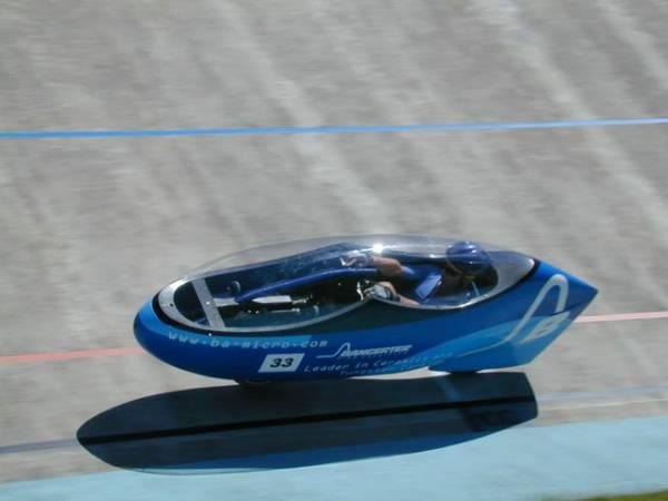 | Birk comet chassis caréné 85km/h en pointe, 62km/h de moyenne Record du monde de Rominger battu, sans dopage. |