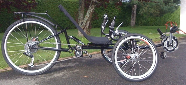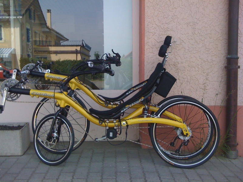 | Trike à moteur pour les Séniors ou ceux qui n'ont pas l'équilibre pour un vélo. Cadre Cr-Mo, triple suspensions, triple disques avid BB5, jantes alu, avant 2x20", arrière 24", moteur 500W, batterie 24V 16A, Sram X5: pédalier 48/38/28, dérailleur 9 vitesses 11-34. frein à main, porte bagage, pare boue, poignée des gaz, rupteur sur frein arrière. Promotion: 2500.-Frs |
